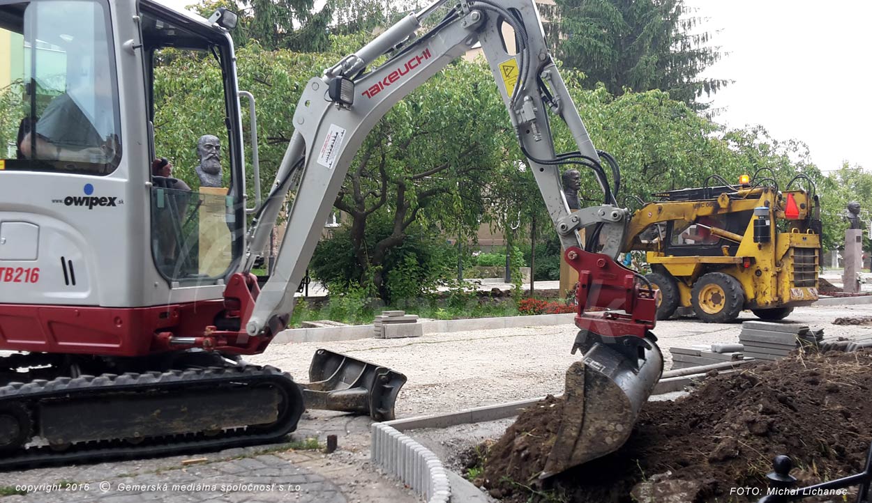 Na Námestí Š. M. Daxnera v Rimavskej Sobote, ktoré spája centrum s Hotelom Zlatý Býk začali v uplynulých dňoch s opravou starého povrchu pešej zóny. Po osadení nových obrubníkov pracovníci Technických služieb dopĺňajú k obrubníkom zem a zarovnávajú ju technikou. Odpílené lavičky na sedenie potom vrátia na pôvodné miesta. Ako ďalej pre Rimava.sk uviedol riaditeľ Technických služieb mesta Tibor Barto, ide o opravu v rámci bežných úprav mestských komunikácií, keďže po vyasfaltovaní desiatok ulíc nemajú také vysoké náklady na opravu výtlkov ciest ako pred niekoľkými rokmi. Práce podľa jeho slov realizujú svojpomocne, niektorú techniku majú zapožičanú. Výšku nákladov na novú dlažbu a práce zatiaľ uviesť nevedel. S prácami by mali byť hotoví v priebehu leta.