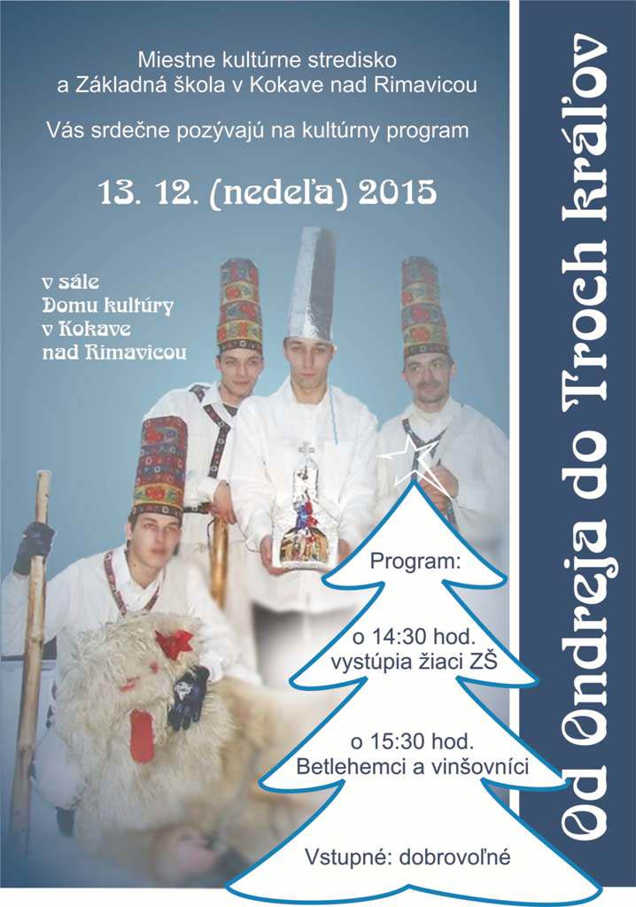 V nedeľu, 13. decembra, zaplnia koledy a vinše kultúrne domy v Kokave nad Rimavicou a v Klenovci, kde sú navyše podľa manažérky pripravené sprievodné aktivity ako výstava ručných prác, výrobky remeselných majstrov a pod zub koláčiky aj vianočný punč.
