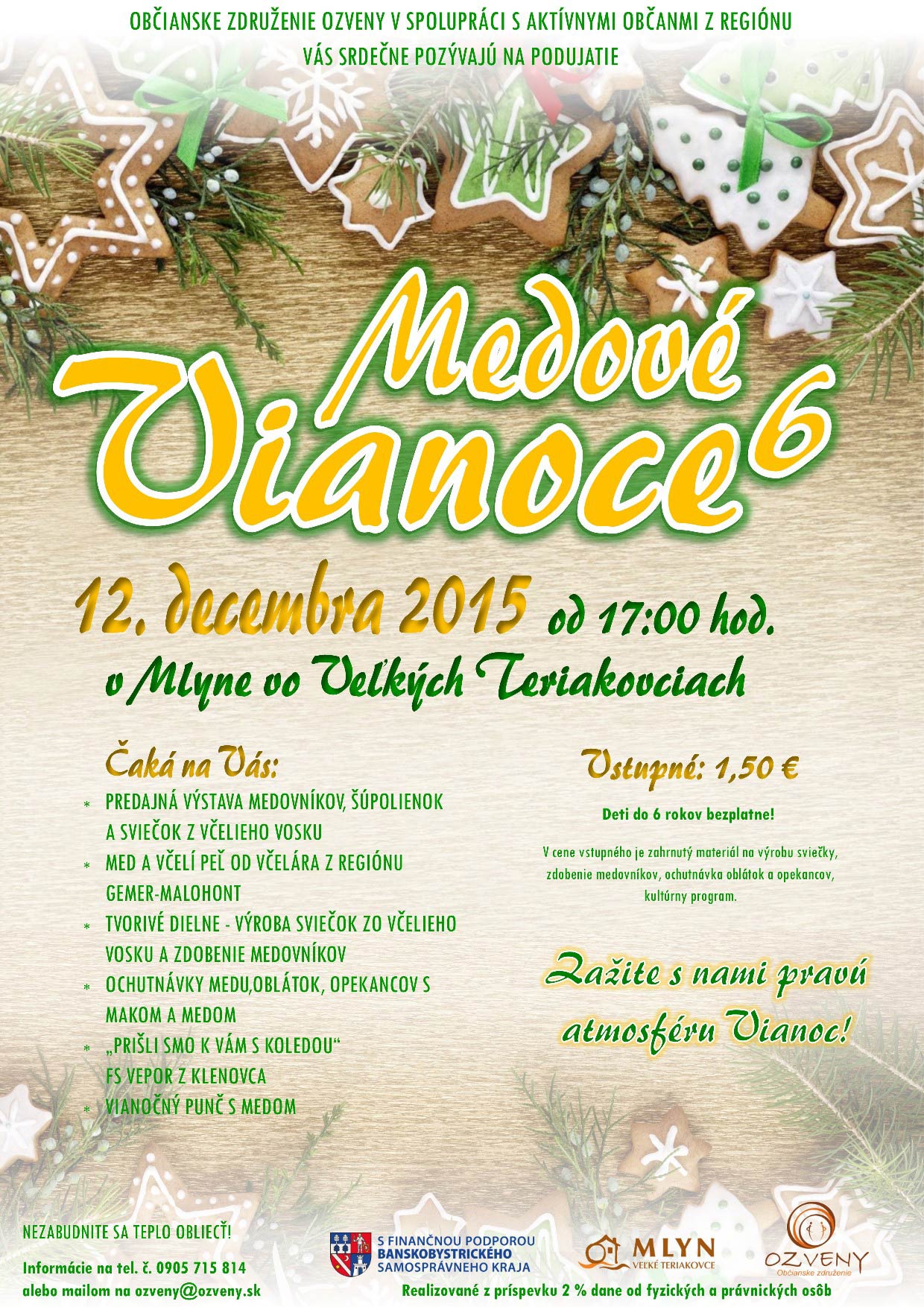Druhý adventný víkend bude spojením medu, vianočných kolied a vinšov. V sobotu, 12. decembra, bude mlyn vo Veľkých Teriakovciach už po šiestykrát dejiskom podujatia Medové Vianoce, počas ktorého to bude takmer na každom kroku voňať a chutiť po mede. „Pripravené sú tvorivé dielne, ukážky pečenia oblátok, ochutnávky i vinše a koledy. Okrem toho bude možnosť zakúpiť si aj med a včelí peľ priamo od včelára z regiónu Gemer-Malohont,“ uviedla Vargová.