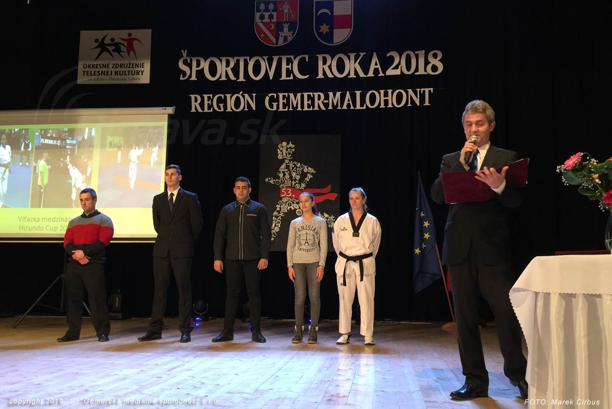 Hnúšťa bola uplynulý piatok dejiskom slávnostného galavečera ankety Najlepší športovec roka 2018 v regióne Gemer-Malohont. Miestom galavečera bol tamojší Domu kultúry.Anketu Športovec roka vyhlásilo Okresné združenie telesnej kultúry so sídlom v Rimavskej Sobote. Oceňovalo sa v niekoľkých kategóriách. Tou prvou bola mimoriadna. V nej ocenili športovcov na základe rozhodnutia mesta Hnúšťa. Ako odznelo na slávnostnom vyhodnotení, sú to občania, ktorí trvalo reprezentovali mesto a prispeli tak k dobrému menu všetkých občanov mesta. Cenu si prevzal kulturista Jakub Prokop, bedmintonista Vladan Pevný, kickboxerista Ján Radič, súťažiaca v taekwonde Ivana Kyseľová a medzi ocenenými bol aj kolektív, a to Taekwondo klub Hnúšťa.