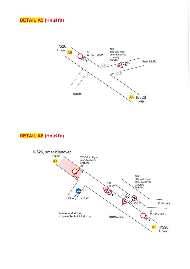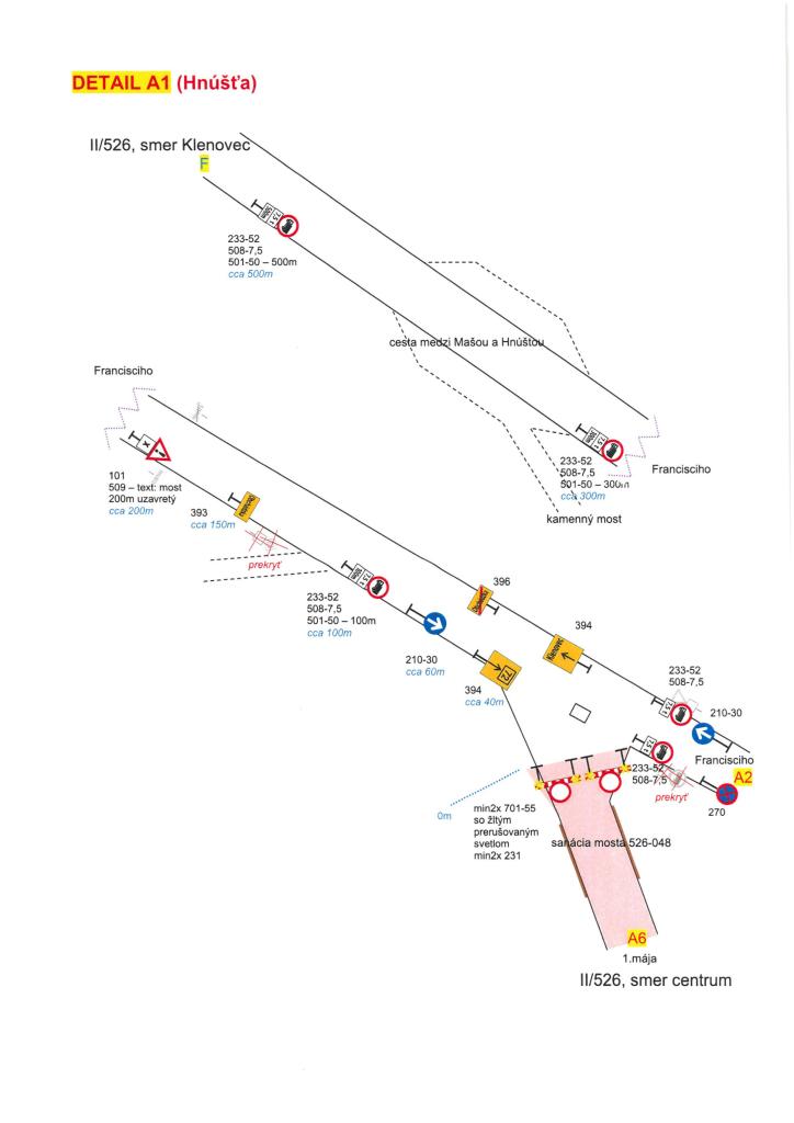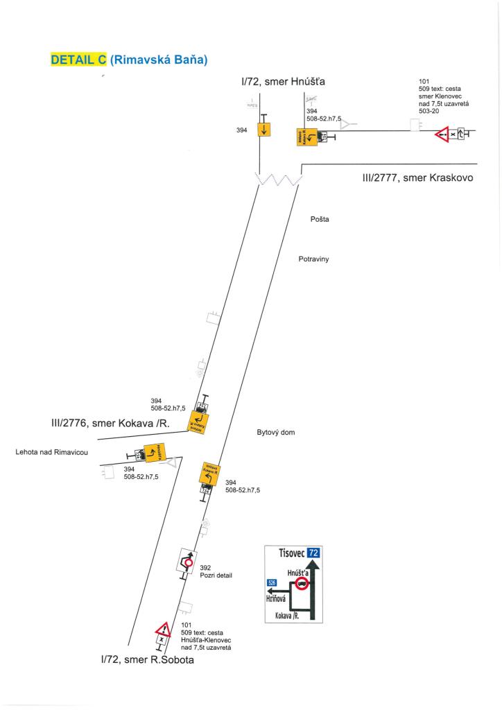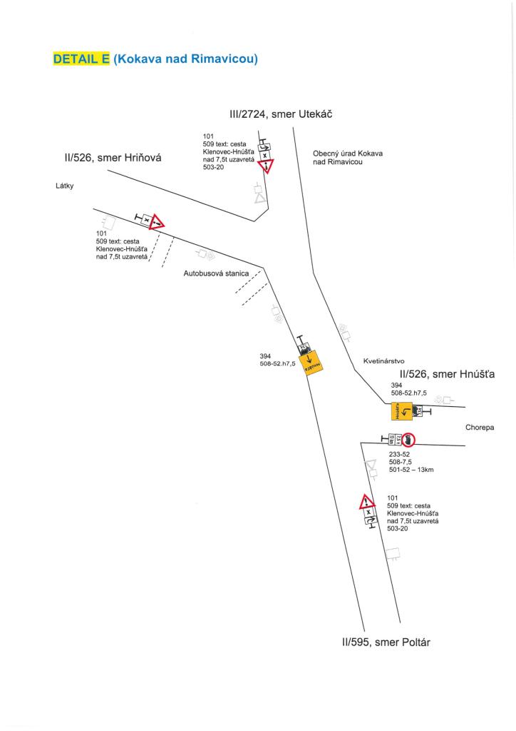 Dočasné dopravné značenie vypracovala spoločnosť MANAGER plus, s.r.o. Lučenec, ktorá zabezpečí aj osadenie značenia na celej obchádzkovej trase. Projekt obchádzkovej trasy bol schválený Okresným riaditeľstvom Policajného zboru v Rimavskej Sobote, Okresným dopravným inšpektorátom.