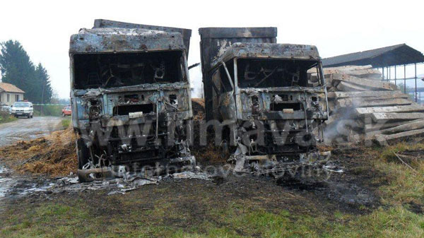 "Vyšetrovateľ v Rimavskej Sobote začal trestné stíhanie vo veci prečinu všeobecného ohrozenia. Príčina požiaru je v štádiu vyšetrovania," uviedla pre Rimava.sk banskobystrická policajná hovorkyňa Mária Faltániová. Ako dodala, požiar  dvoch ťahačov značky DAF s návesmi a slamou spôsobil doposiaľ neznámy páchateľ. "Následkom požiaru došlo k úplnému zhoreniu obidvoch ťahačov, návesov aj slamy, čím trom spoločnostiam vznikla škoda odhadnutá na viac ako 209 tis. eur," doplnila.