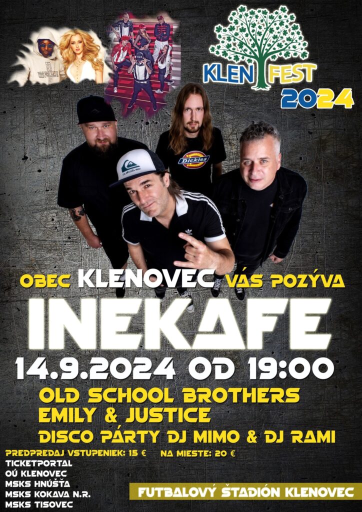 Program sa začne od 19:00 na obecnom futbalovom štadióne. Lístky je možné si zakúpiť v kultúrnych strediskách Hnúšťa, Tisovec a Kokava nad Rimavicou, na obecnom úrade Klenovec a Ticketportale.