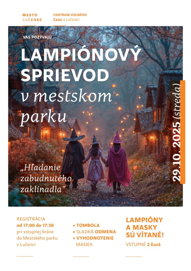 V stredu 29. októbra 2025 sa v mestskom parku uskutoční Lampiónový sprievod s tematickým podtitulom „Hľadanie zabudnutého zaklínadla“.