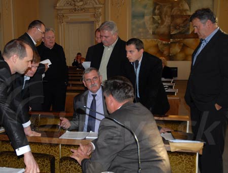 Ing. Zoltán Bán (v strede) v diskusii s poslancami MsZ.
