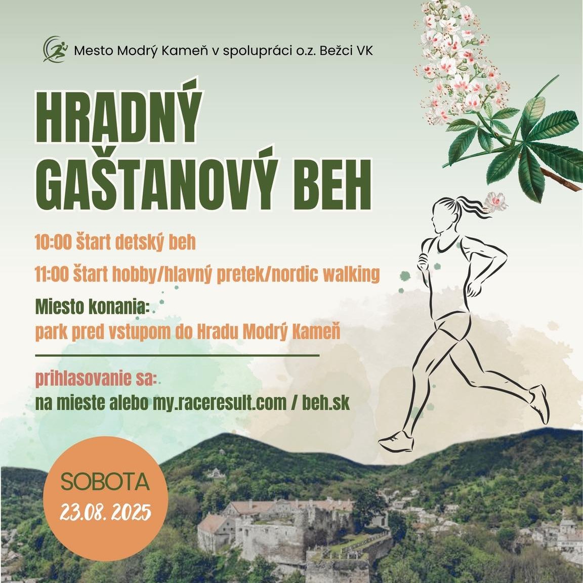 Mesto Modrý Kameň v spolupráci s občianskym združením Bežci VK pozývajú všetkých športovcov aj priaznivcov aktívneho pohybu na 1. ročník Hradného gaštanového behu.