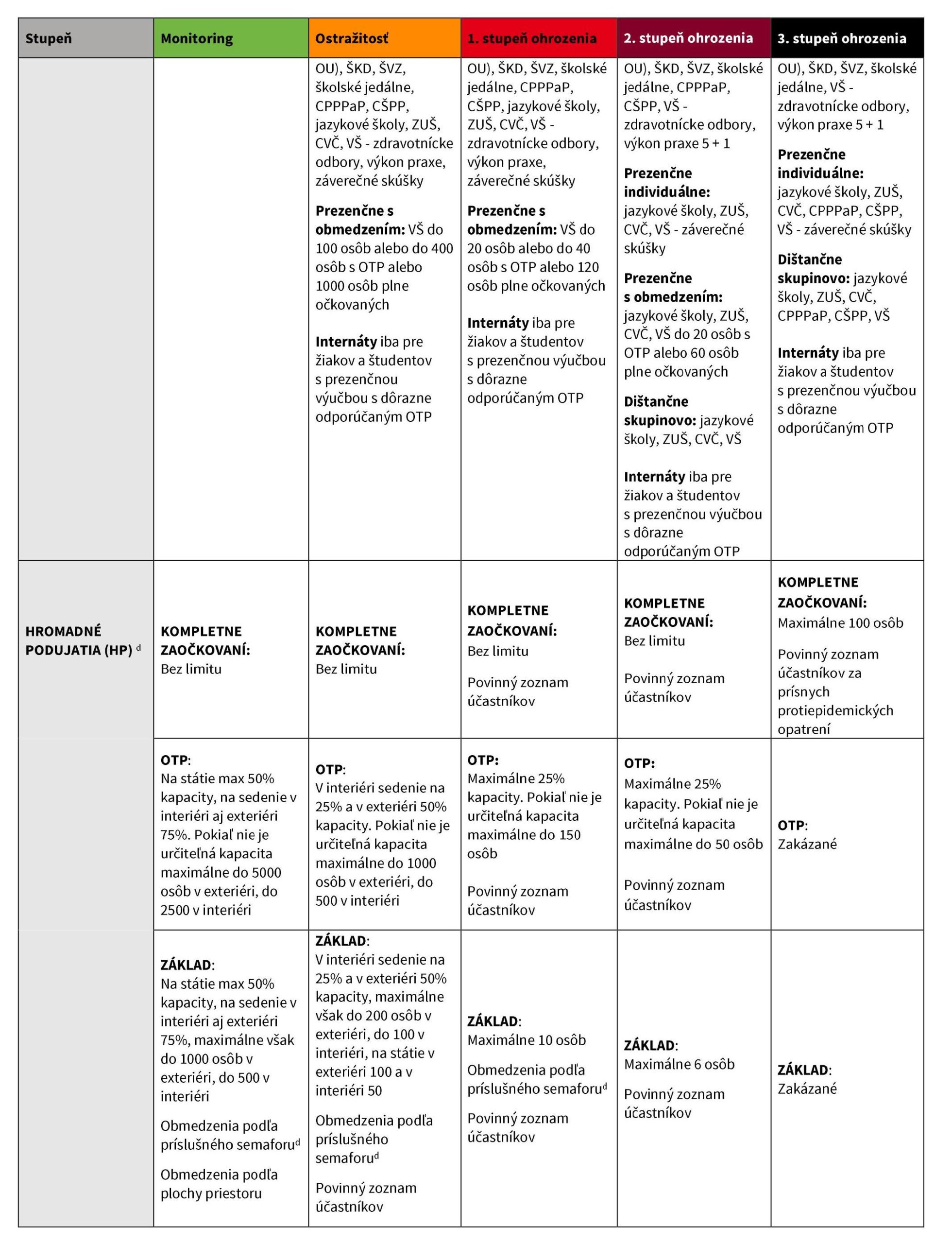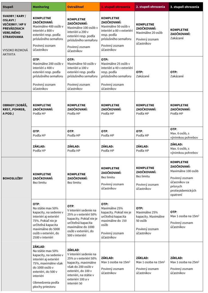 bordová: kompletne zaočkovaní - max 25% kapacity; OTP - max. 10 osôb; základ - zakázané