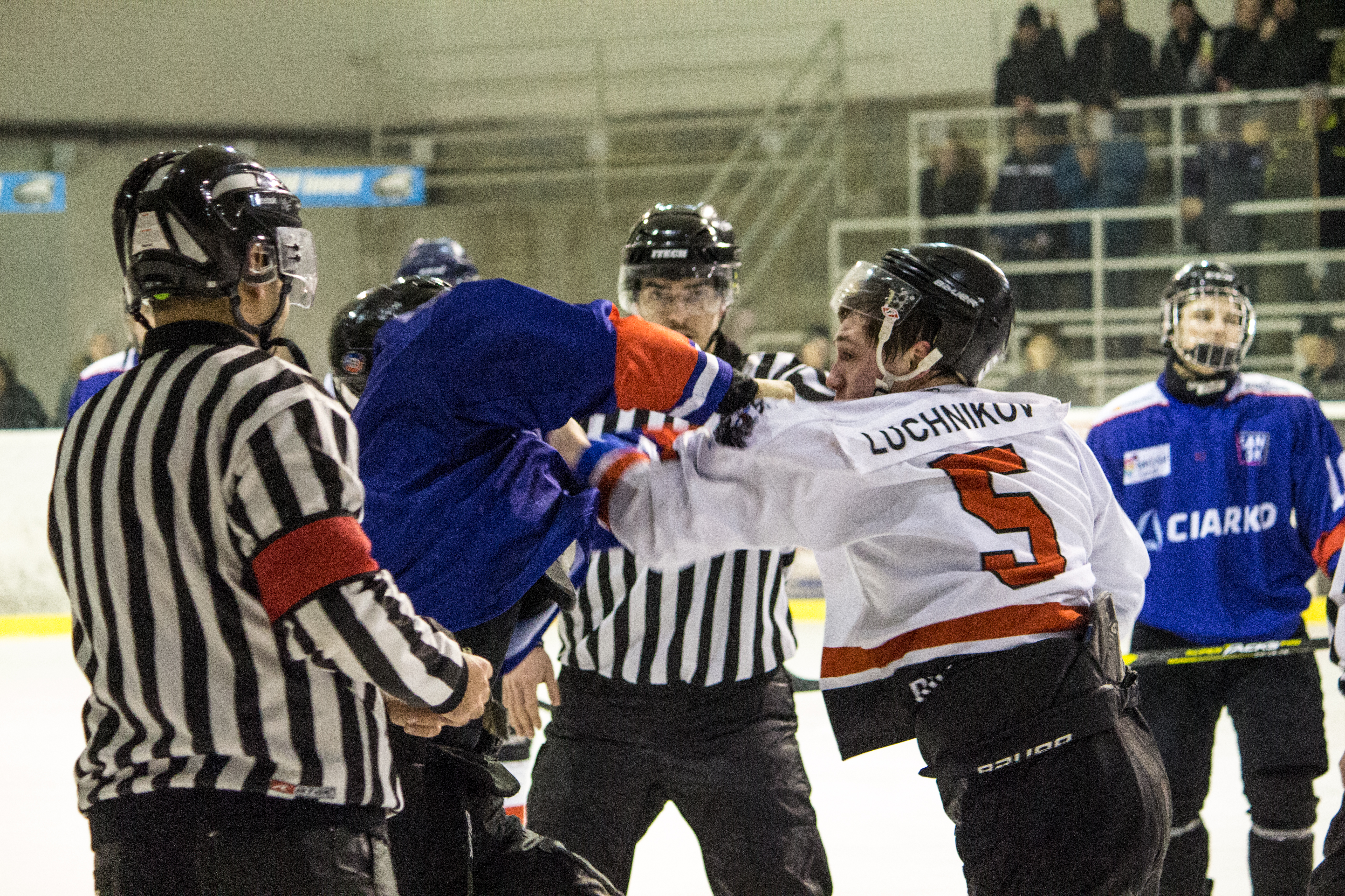 Strely: 43:27. Vylúčenia: 9:9 na 2 min., navyše Luchnikov a Kondrashov 5+DKZ za bitku. Presilovky: 2:3. Oslabenia: 1:0. Rozhodcovia: Greguš - Paulík, Staššák. Diváci: 500.