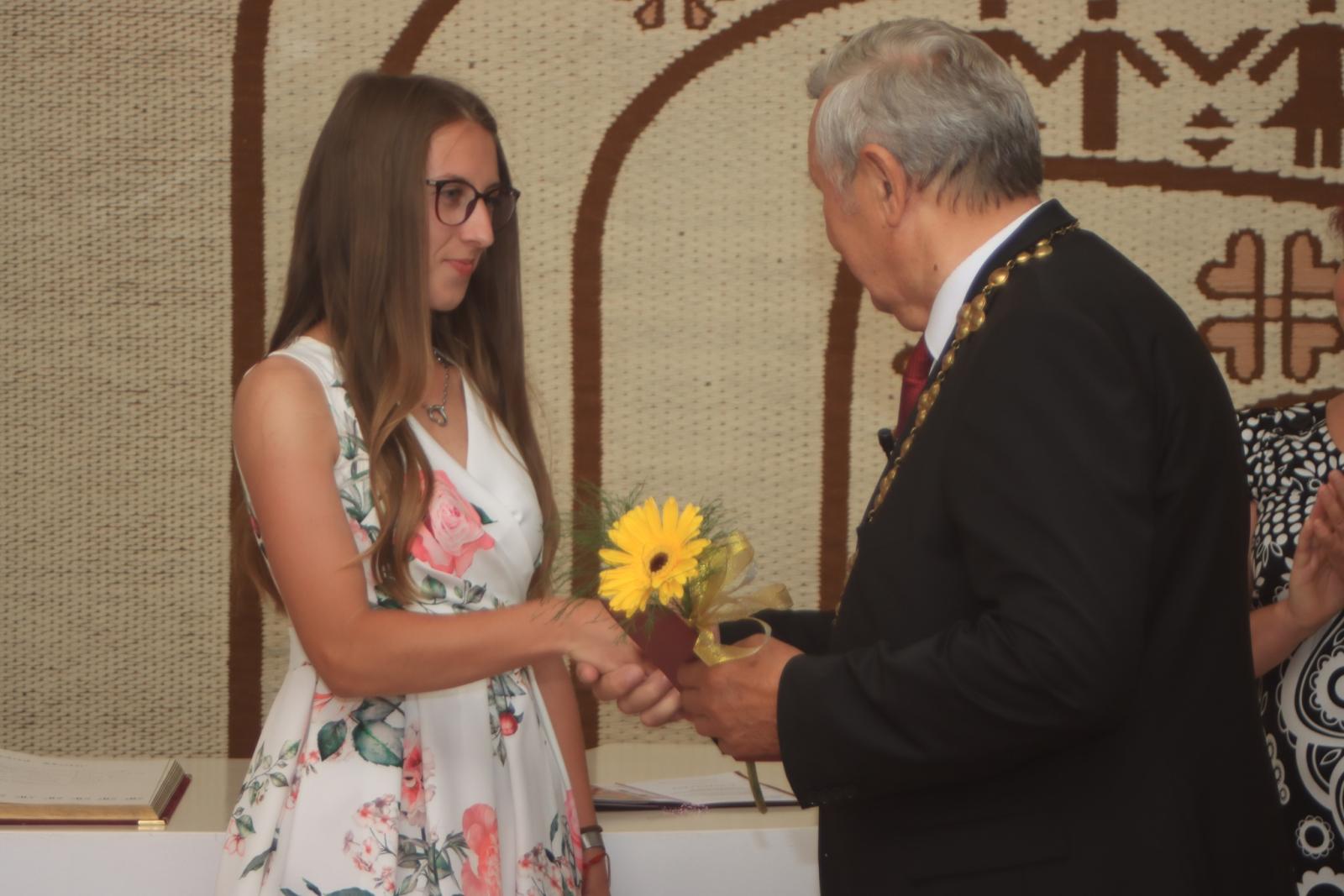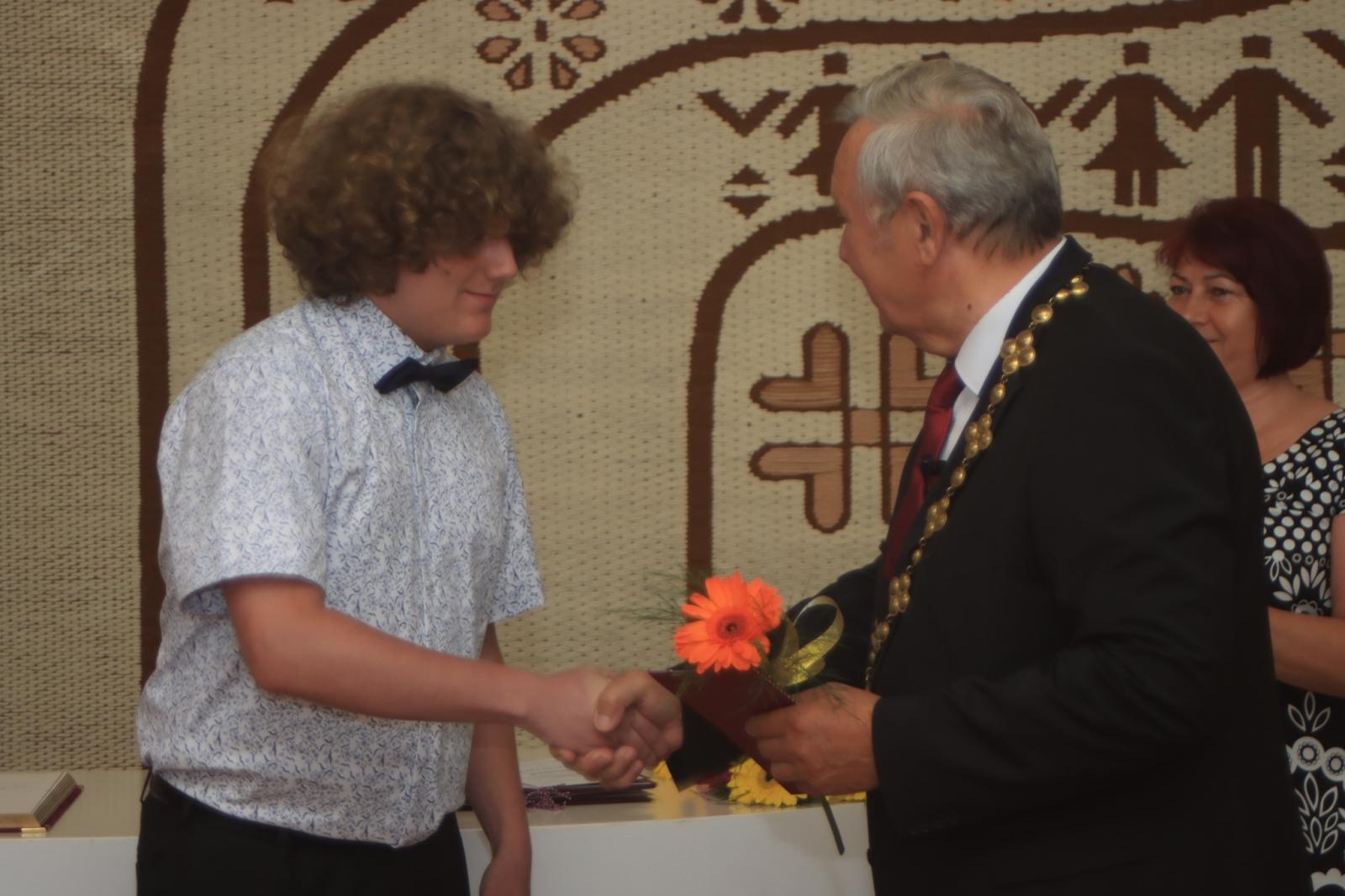 RIMAVSKÁ SOBOTA – Školské prázdniny sa pomaly začínajú, no ešte predtým samospráva ocenila najúspešnejších žiakov tunajších škôl za úspechy a vzornú reprezentáciu mesta. Uplynulý pondelok si prevzali ocenenia z rúk primátora mesta Jozefa Šimka v obradnej sieni mestskej radnice.