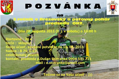 V sobotu, 20. augusta, sa bude konať aj tretí ročník súťaže o pohár predsedu OHZ Rimavského Brezova. Pre Rimava.sk to potvrdil Dušan Stieranka. Ako uviedol, do dnešného dňa je prihlásených už 18 družstiev, čo je podľa jeho slov podstatne viac ako vlani, ďalšie majú na prihlasovanie ešte dva dni. Na futbalovom ihrisku si svoje sily zmerajú od 10.00 hod., pripravené budú aj atrakcie.