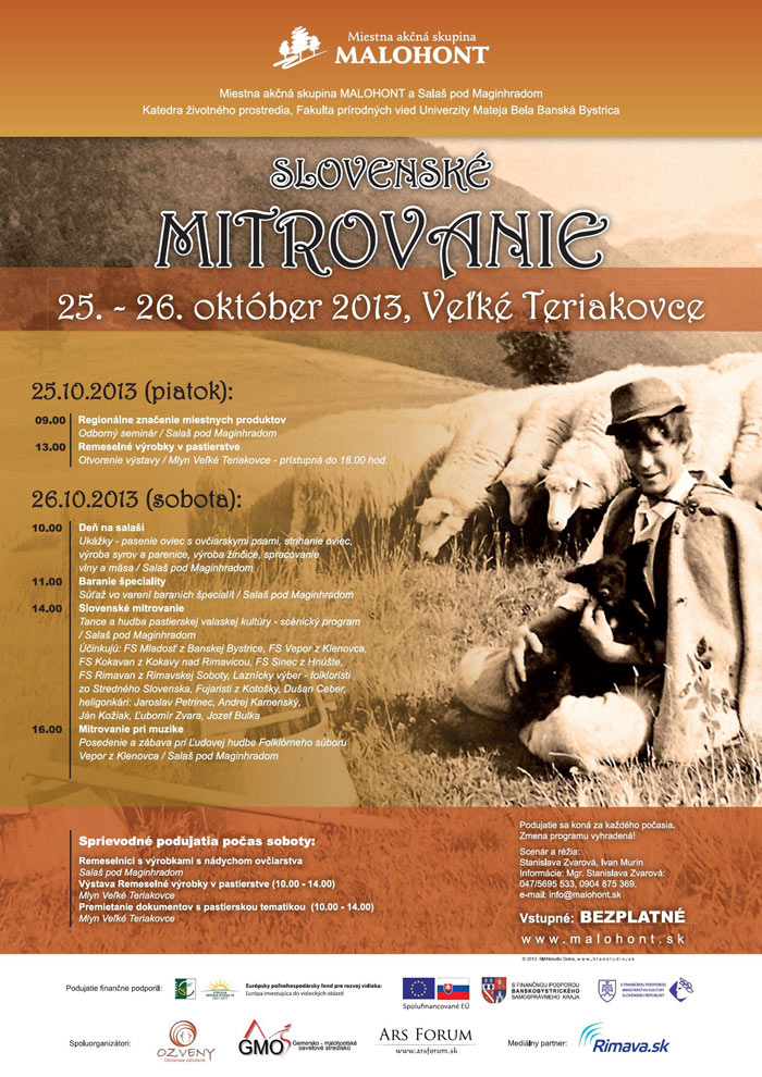 Ukážky prác na salaši, tance a hudba pastierskej valaskej kultúry, baranie špeciality, výstava a filmy s pastierskou tematikou, ako aj ďalšie sprievodné aktivity čakajú na návštevníkov druhého ročníka podujatia pod názvom Slovenské mitrovanie, ktoré sa bude konať 25. - 26. októbra v obci Veľké Teriakovce.