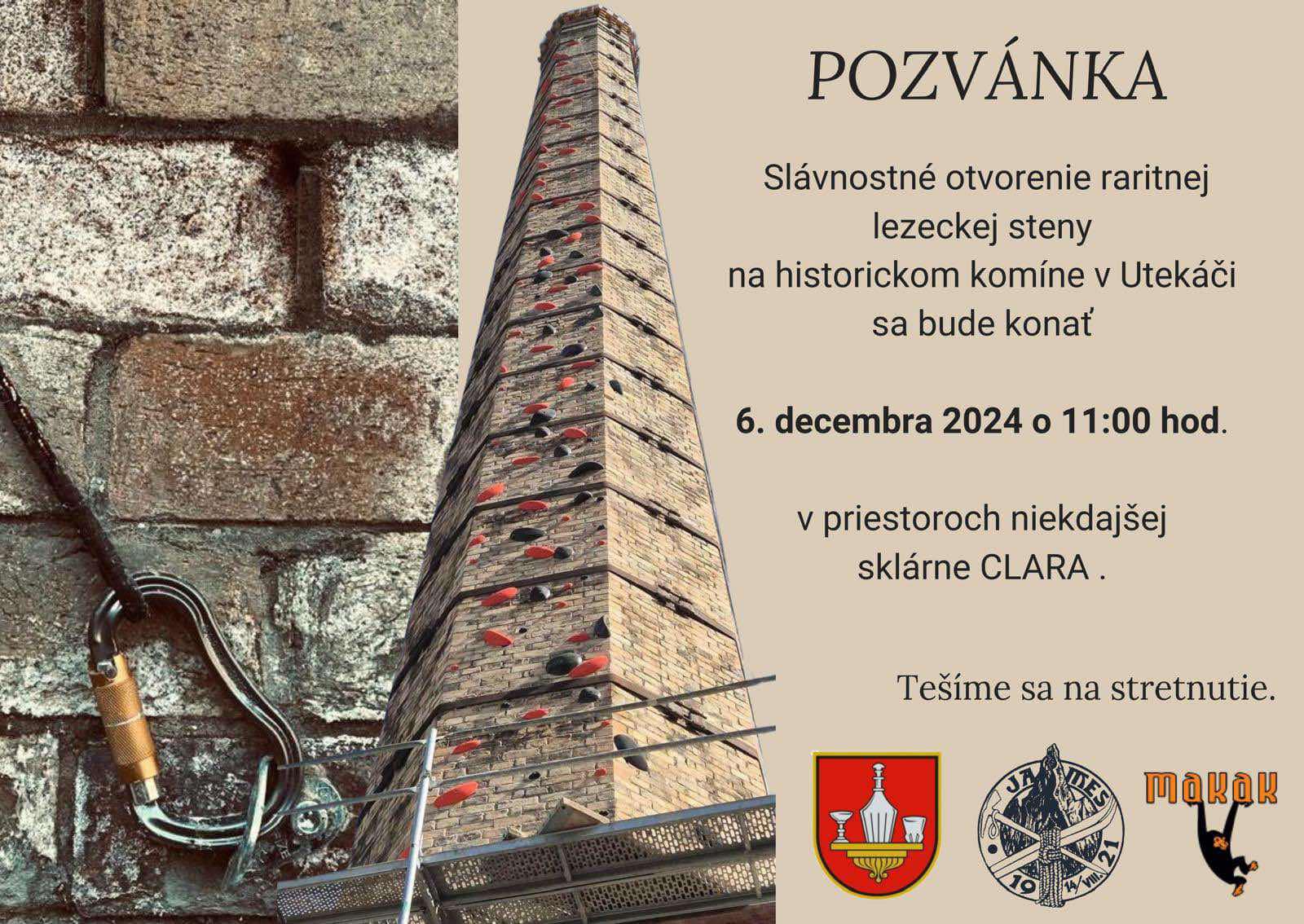 UTEKÁČ - V prostredí bývalej sklárne CLARA v Utekáči sa uskutoční slávnostné otvorenie jedinečnej lezeckej steny, ktorá bola zriadená na historickom komíne z roku 1787. Podujatie, ktoré sa začne 6. decembra o 11.00, sľubuje množstvo významných momentov a je organizované s cieľom vzdať hold miestnej histórii sklárstva a podporiť rozvoj športovej turistiky v regióne Novohrad.