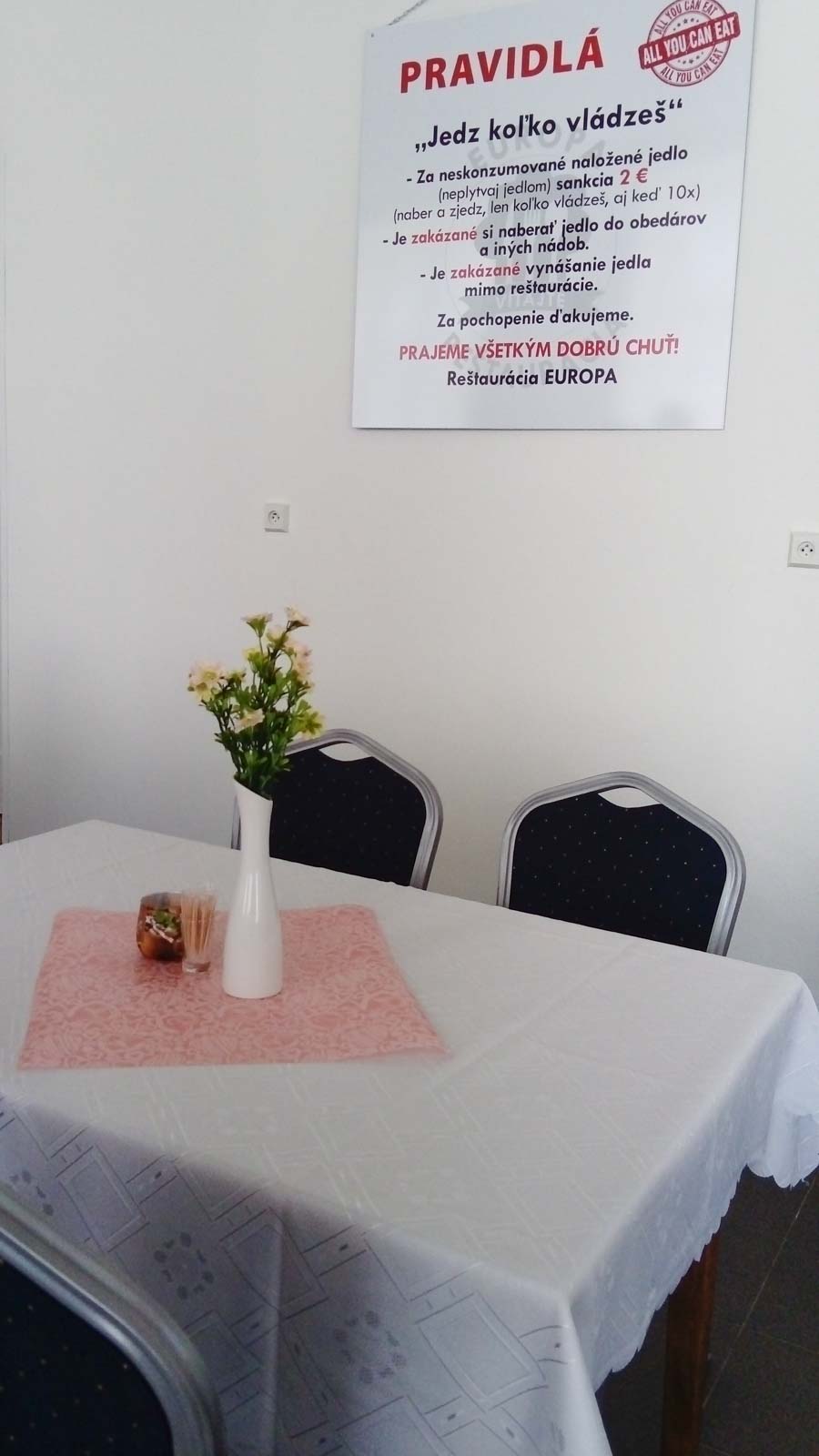 Reštaurácia Európa ponúka mnoho špecialít v rôznych akciách „zjedz koľko vládzeš“ alebo „ teplé pulty“. Podľa majiteľa reštaurácie si tak u nich za jednotnú cenu môžu ľudia vybrať čo chcú a načo majú chuť. Ako sme sa dozvedeli, návštevnosť sa zvyšuje, ľuďom sa u nich páči. „Každý piatok plánujeme akcie so živou hudbou. O rok počítame aj s usporiadaním plesov, samozrejme aj so všetkými typmi rodinných osláv, stretnutí, krstín, podnikových osláv, seminárov či karov. Tešíme sa na prejavený záujem," dodal György, ktorý má doposiaľ skúsenosti s potravinami či mäsiarstvom a preto pracujú stále s čerstvými surovinami.