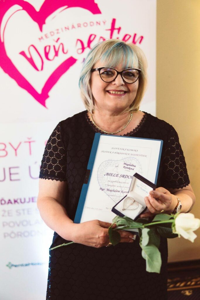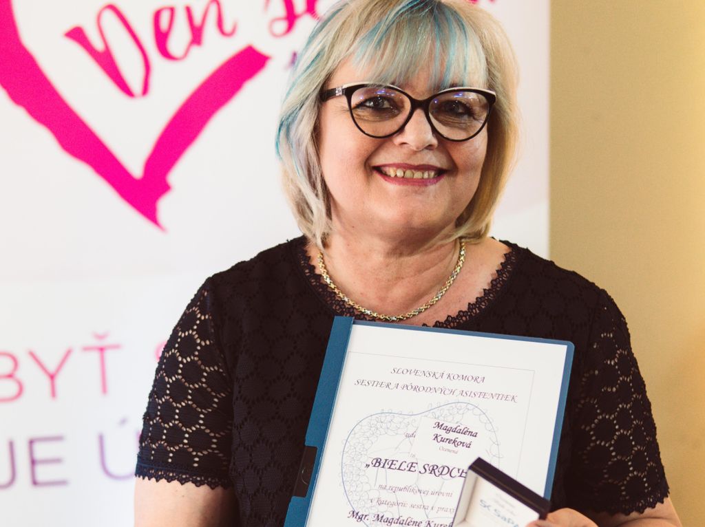 RIMAVSKÁ SOBOTA - Vedúca sestra psychiatrického oddelenia Nemocnice Svet zdravia Rimavská Sobota Magdaléna Kureková získala ocenenie Biele srdce. Ocenenie každoročne udeľuje Slovenská komora sestier a pôrodných asistentiek pri príležitosti Medzinárodného dňa sestier. Informovala o tom Bianka Krejčíová, PR špecialistka ProCare, a.s. a Svet zdravia, a.s.