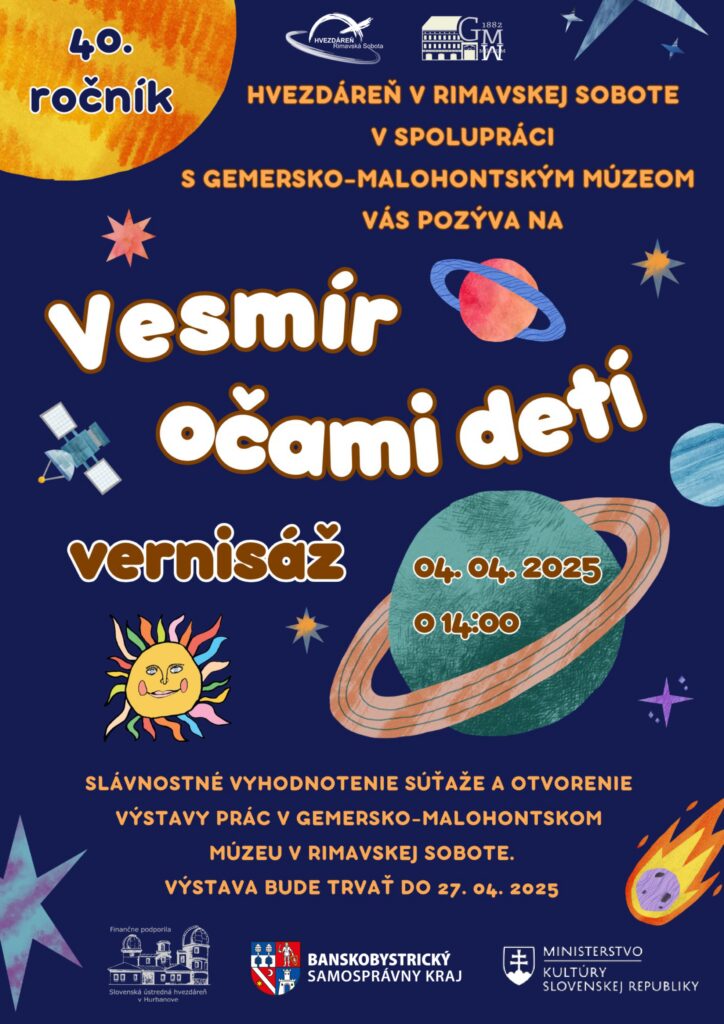 Hvezdáreň v Rimavskej Sobote v spolupráci s Gemersko-malohontským múzeom srdečne pozýva všetkých nadšencov umenia a vesmíru na vernisáž výstavy Vesmír očami detí.