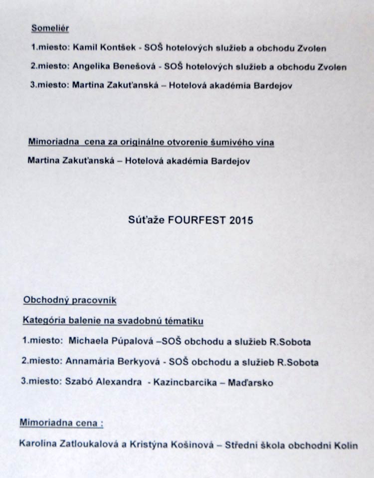 Úspešný, plný humoru, napätia ale aj dojatia. S takýmito prívlastkami sa skončil ôsmy ročník súťaže v zručnostiach žiakov, Fourfest. Na podujatí, ktoré organizovala Stredná odborná škola obchodu a služieb (SOŠOS) v Rimavskej Sobote sa zúčastnilo približne sto študentov z osemnástich stredných odborných škôl zo Slovenska, Česka, Maďarska a Poľska.