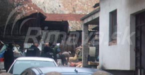 Na dvore rodinného domu počas domovej prehliadky pracovali niekoľkí mäsiari. Svoju prácu prerušili iba na začiatku, po príchode kukláčov.