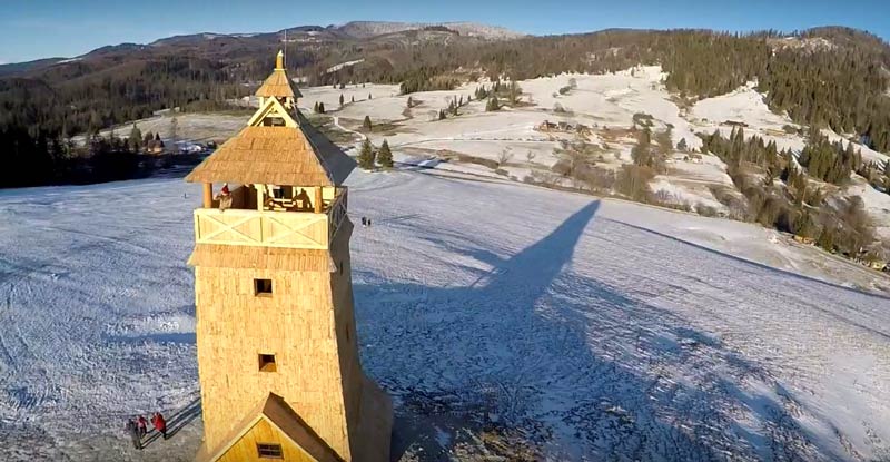 Letecké zábery zimnej prírody v okolí sedla Zbojská boli v rukách Roberta Piatríka. Vďaka jeho záberom „preletíte“ popod železničný most, pokocháte sa pohľadom na sochu zbojníka i na neďalekú novovystavanú vyhliadkovú vežu spojenú s kaplnkou. Veža bola postavená cez projekt Rozvoj ochrany prírody a chránených území v slovenských Karpatoch. Financie poskytlo Švajčiarsko prostredníctvom svojho finančného mechanizmu.
