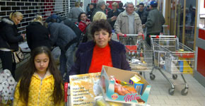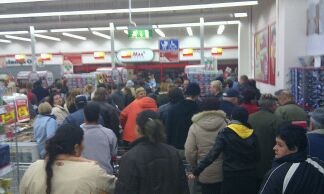 Prvé nočné nakupovanie v obchodnom dome v centre Rimavskej Soboty si vyžiadalo zvýšený dohľad polície. Všetky parkoviská v okolí obchodného domu pri Hoteli Zlatý býk boli zaplnené, dopravné zápchy začínali už od kruhového objazdu pri Malohontskej ulici. "Davová psychóza" vypukla okolo jedenástej hodiny večer, podľa našich informácií trvala nákupná horúčka počas celej noci, problémom bolo údajne čo i len dostať sa k nákupnému vozíku.
