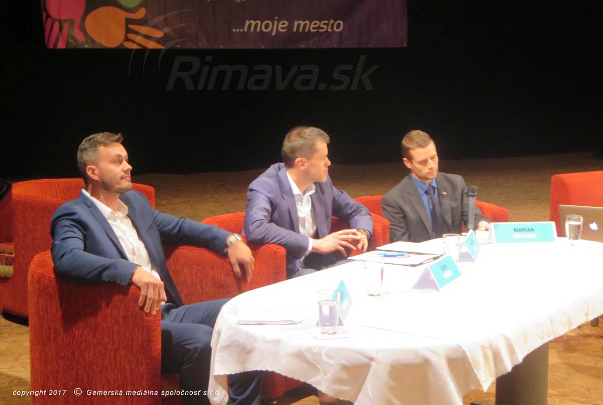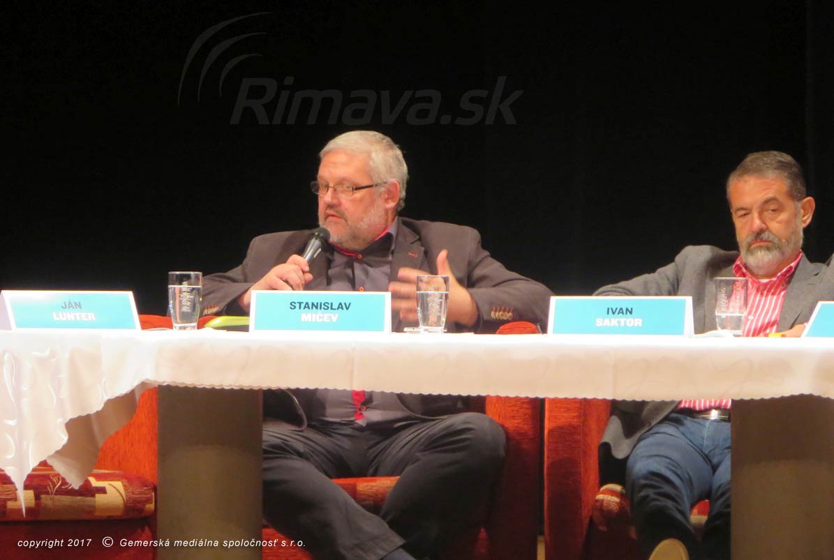 V Rimavskej Sobote sa opäť verejne diskutovalo. Po besede s verejnými činiteľmi, sa v divadelnej sále Domu kultúry tentoraz stretli niektorí kandidáti na župana. Spomedzi siedmich kandidátov, ktorí zatiaľ potvrdili svoje ambície stať sa županom Banskobystrického samosprávneho kraja, prišli na verejnú diskusiu piati - Martin Juhaniak (prednosta Mestského úradu v Brezne), Igor Kašper (poslanec banskobystrického mestského parlamentu), Martin Klus (poslanec NR SR za stranu Sloboda a Solidarita a poslanec Mestského zastupiteľstva v Banskej Bystrici), Stanislav Mičev (riaditeľ Múzea SNP v Banskej Bystrici) a Ivan Saktor (bývalý primátor Banskej Bystrice).