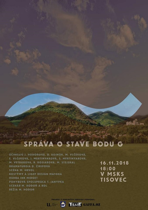 O niečo ďalej, v Tisovci, to bude pre zmenu len o divadle. V tamojšom Dome kultúry si pre návštevníkov pripravil Divadelný súbor Daxner premiéru autorskej epopeje z prostredia minulého aj súčasného Tisovca a Tisovčanov s názvom Správa o stave bodu G. Začiatok predstavenia je o 18:00 hod. Vstup len od 15 rokov.