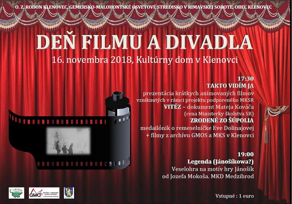 Hudbou to dnes bude žiť aj v Evanjelickom a.v. kostole v Jelšave, kde sa od 17:00 hod. predstaví zbor Quirin. V Kultúrnom dome v Klenovci sa môžete od 17:30 hod. tešiť na 7. ročník podujatia s názvom Deň filmu a divadla.