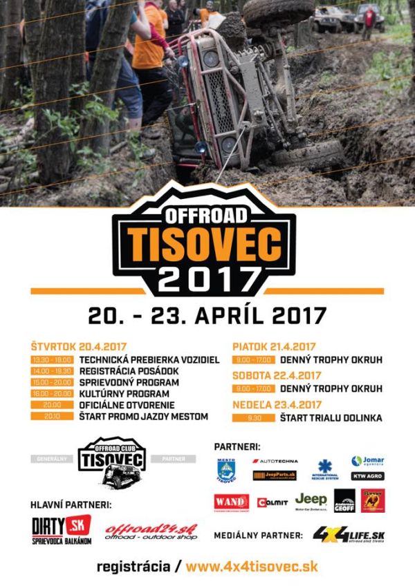 Víkendové poduajtia odštartovali štyri kolesá. V meste pod Hradovou začal Offroad Tisovec 2017. Od dnes, 21. apríla, sú až do nedele, 23. apríla, na programe súťažné jazdy na približne sto kilometrovej trati.