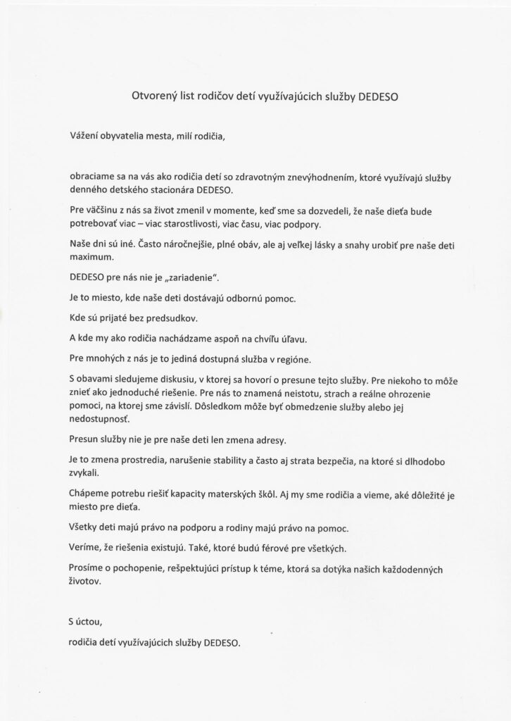 Celé znenie otvoreného listu materskej školy
