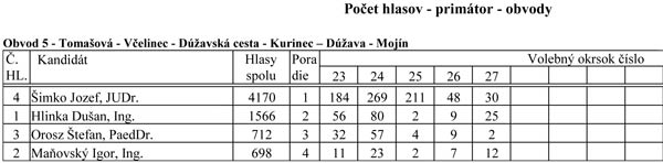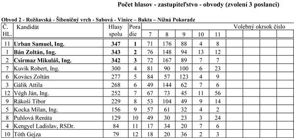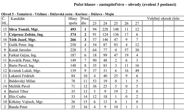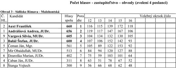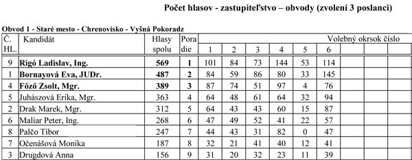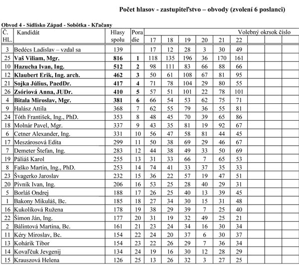 Tu je prehľad o počte získaných hlasov pre kandidátov na poslancov:
