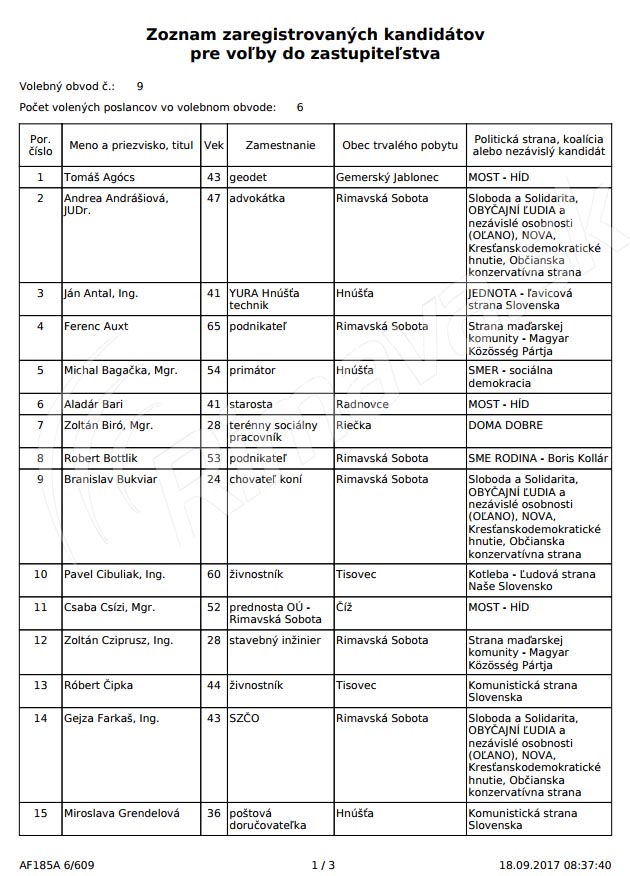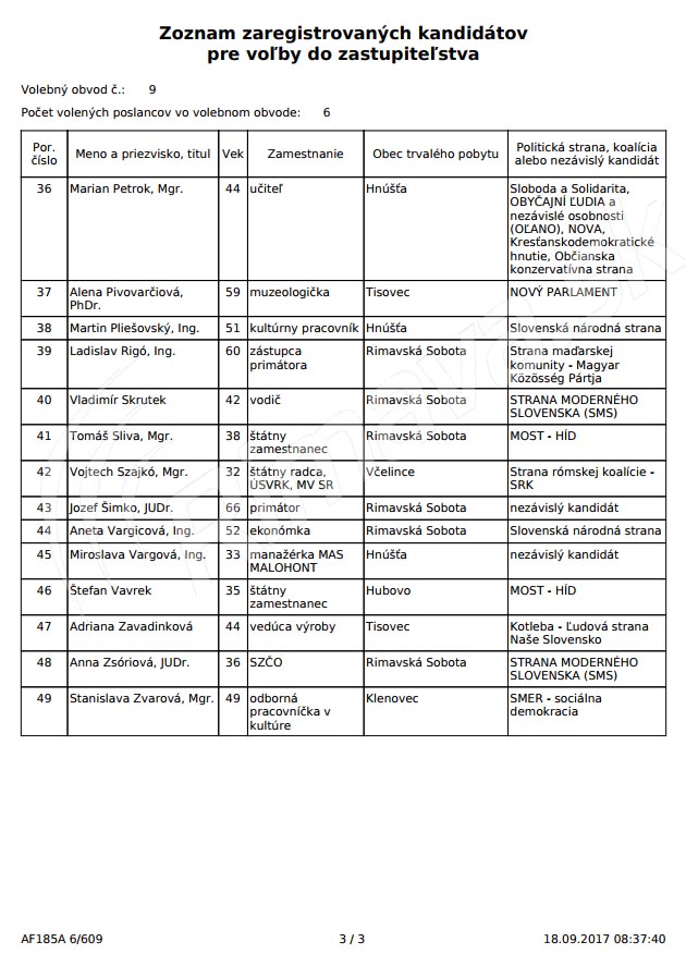 Medzi poslancami zrušenie svojej kandidatúry krajskej volebnej komisii oznámil Zdenek Očovan z Tisovca a Michaela Kružlicová z Rimavských Janoviec.