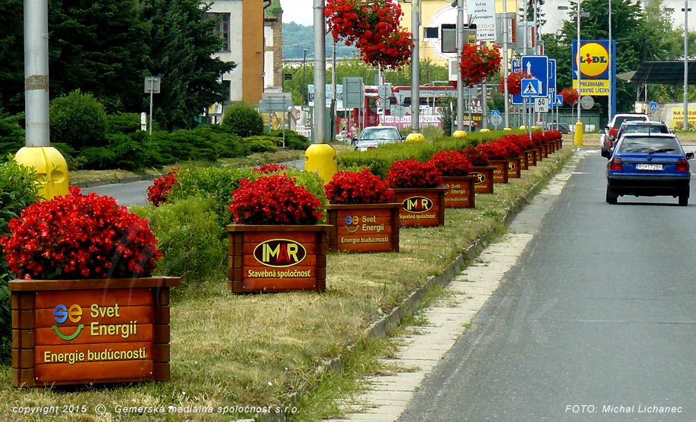 Kvetináče k ceste umiestnila a aj udržiava naša spoločnosť. Vlastne nielen to, ale IMAR sa stará o kompletnú zeleň v stredovom pásme tejto cesty, od kruháča, po kruháč. Robíme to všetko na vlastné náklady, z vlastných síl.