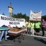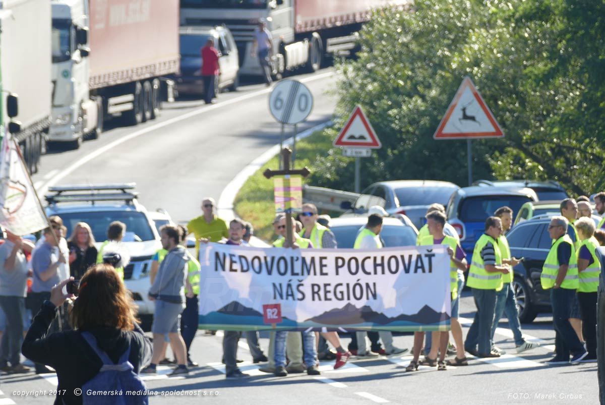 Nedovoľme pochovať náš región. Chceme R2. Aj toto boli heslá na transparentoch protestnej akcie, ktorá bola reakciou na nedávne vyjadrenia ministerstva financií o nerentabilnosti výstavby rýchlostnej cesty R2 smerom od Kriváňa na Košice.Desiatky ľudí dnes, 17. júla od 8:00 hod. na jednu hodinu blokovalo premávku na priechode pre chodcov na ceste E571 v úseku Ožďany – Čierna Lúka, neďaleko Motorestu Cieľ.