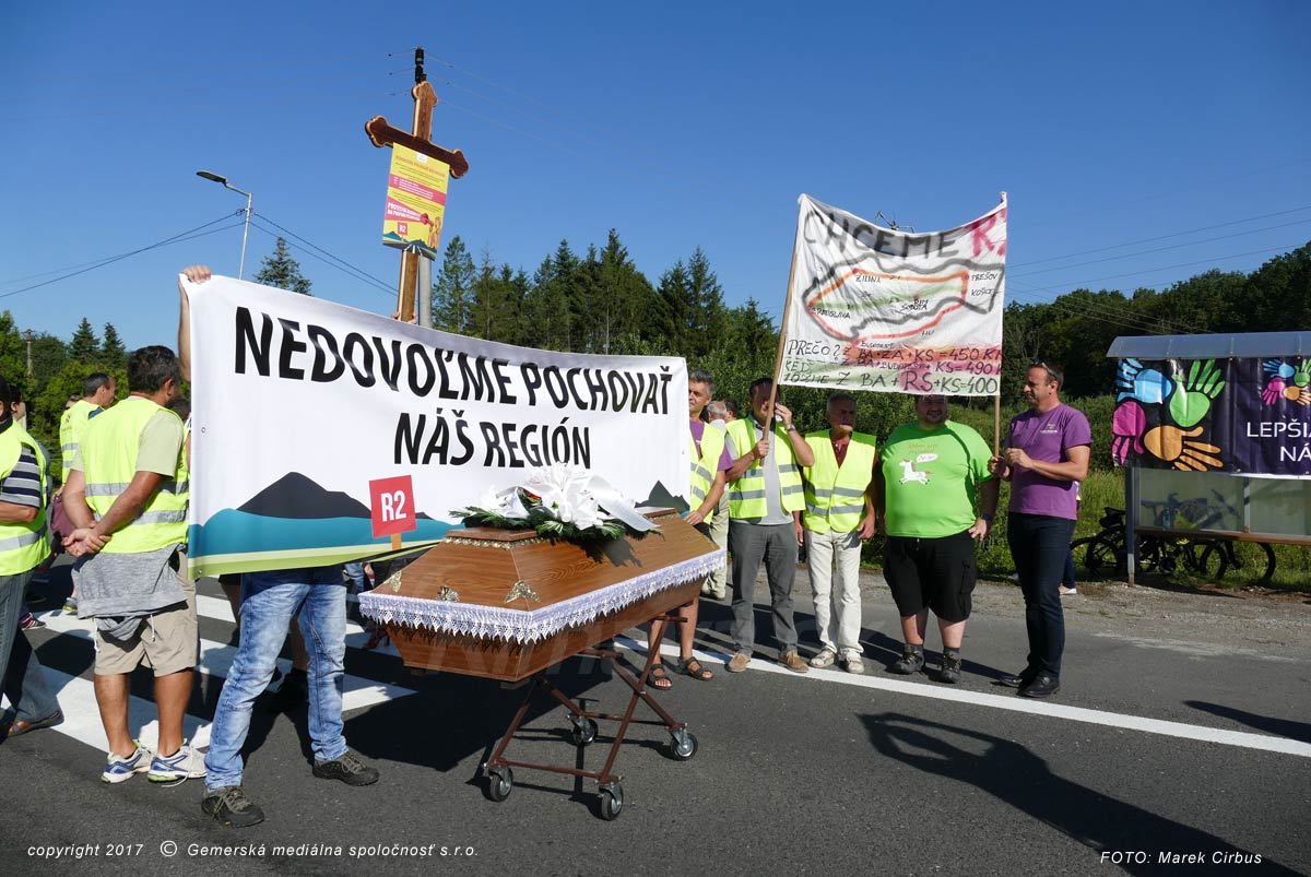 Rýchlostná cesta R2 bola témou aj počas vlaňajšieho výjazdového rokovania vlády v Rimavskej Sobote. Ako Ceglédy doplnil, na tomto rokovaní bolo i uznesenie o tom, že R2-ka sa stavať bude. „Pred dvomi mesiacmi bol v regióne minister dopravy, ktorý nás ubezpečil o tom, že R2 sa stavať bude, dokonca dával konkrétne termíny a minulý týždeň sme sa dozvedeli, že jednoducho ministerstvo financií a jeho Útvar hodnoty za peniaze vyhodnotil cestu R2 ako nerentabilnú,“ ozrejmil člen OZ Naša Sobota. Podľa jeho slov je konečne potrebné začať hovoriť už aj o tomto regióne. „Doteraz sme boli ticho. Počúvali sme ako sa stavia diaľnica na severe, aké sú problémy so stavaním mostov, tunelov. Pričom diaľnica cez juh je najrýchlejšie, najlacnejšie spojenie a najmenej problematickejšie, čo sa týka výstavby. Máme pocit, že na nás každý zabúda. Práve preto zatiaľ iba symbolicky pochovávame náš región. Ale pokiaľ sa veci nepohnú, tak ten región budeme naozaj reálne pochovávať, čo je škoda,“ zakončil Ceglédy.