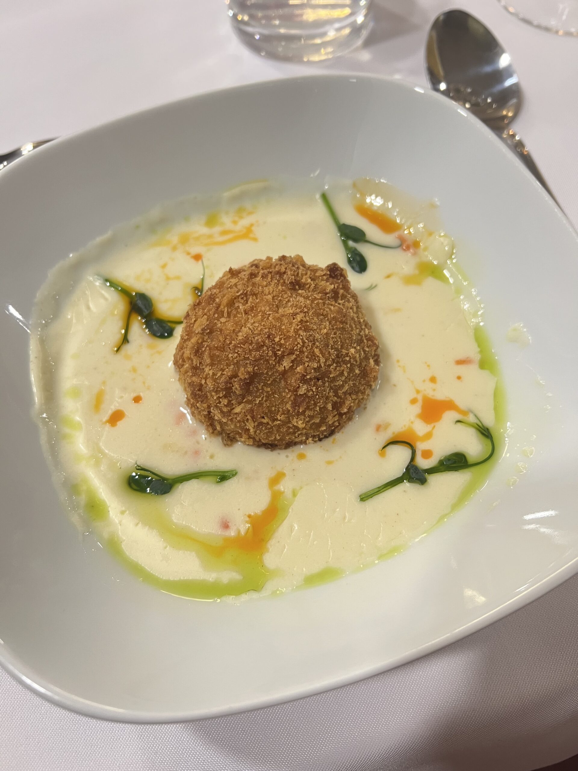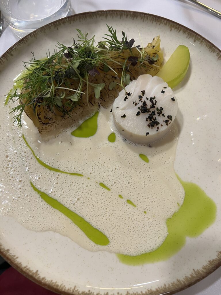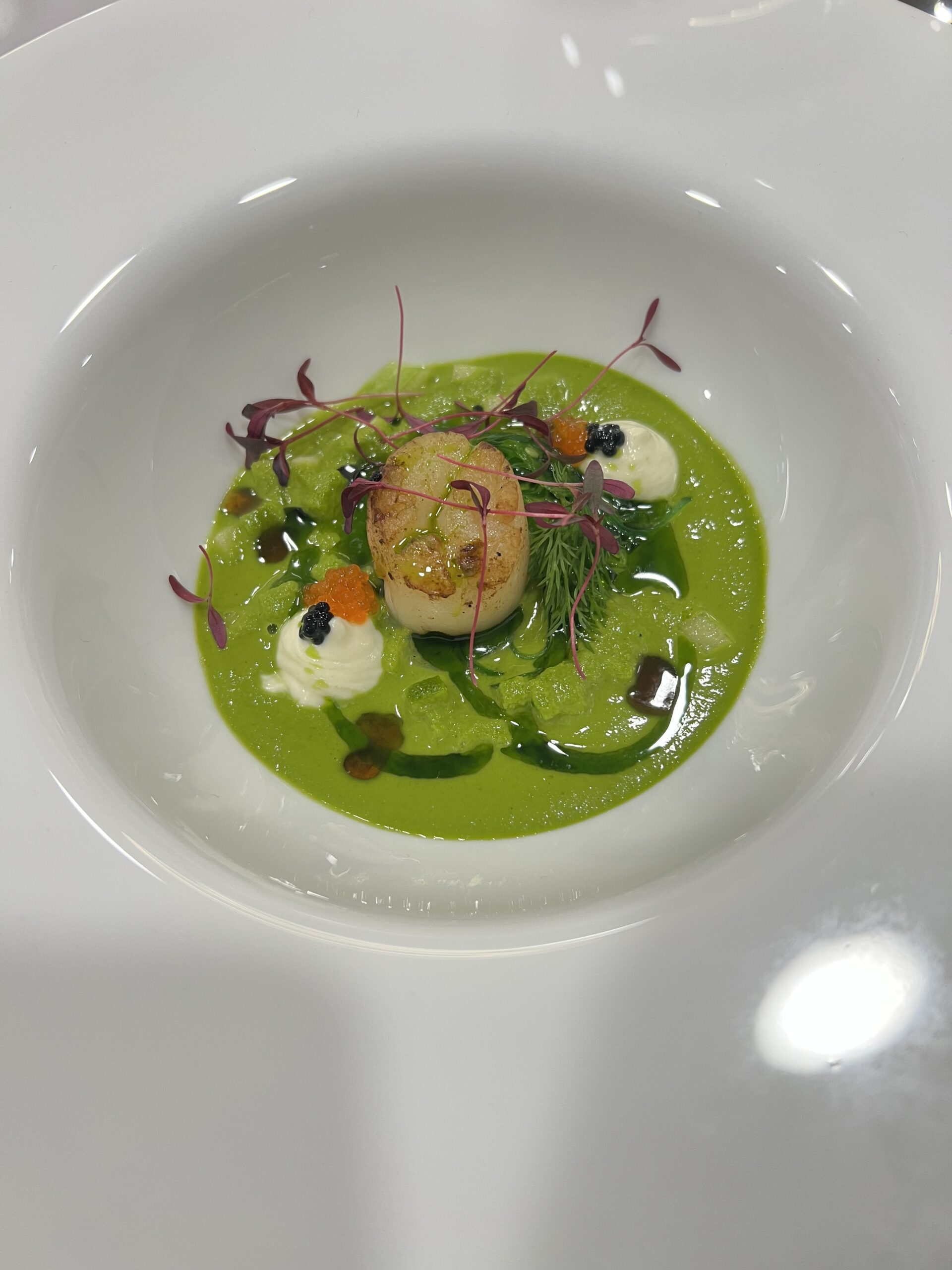 Miroslav Melich – predjedlo: Mušľa sv. Jakuba (hrebenatka) gazpacho z Granny Smith, crème fraîche, wasabi, kaviár, citrón, riasy wakame