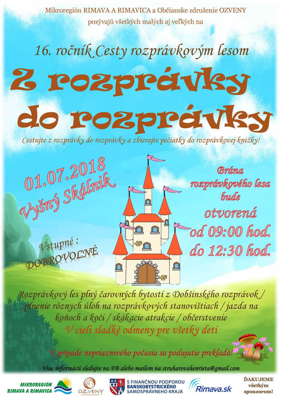 Pre úspech z minulých rokov sa aj tento rok rozhodli organizátori z Mikroregiónu Rimava a Rimavica v spolupráci s Občianskym združením Ozveny usporiadať obľúbené podujatie Cesta rozprávkovým lesom „Z rozprávky do rozprávky“. Pri rybníku vo Vyšnom Skálniku sa tak v nedeľu, 1. júla, uskutoční už 16. ročník tohto podujatia. Brána rozprávkového lesa bude otvorená od 09:00 hod. do 12:00 hod. a opäť umožní malým aj veľkým spoznať a pripomenúť si známeho rozprávkara Pavla Dobšinského.