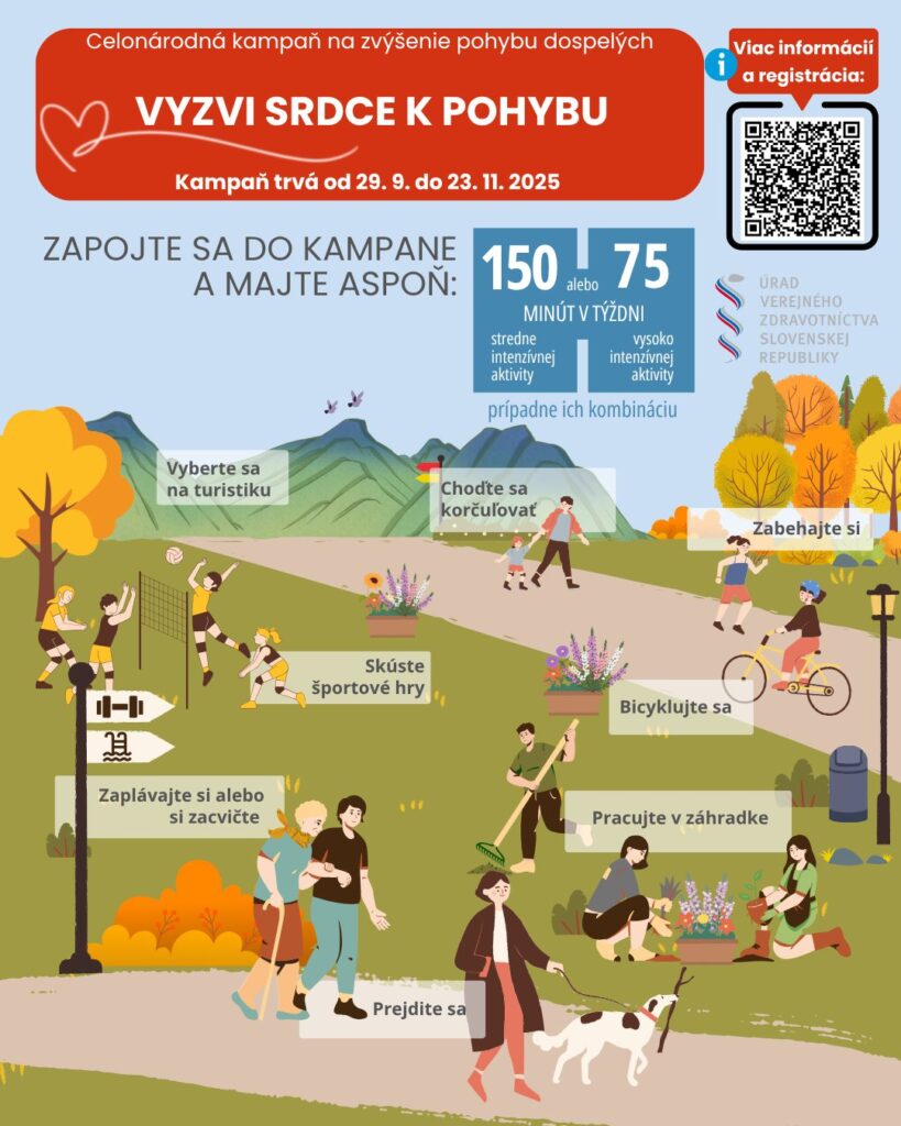 Úrad verejného zdravotníctva Slovenskej republiky spolu s Regionálnym úradom verejného zdravotníctva v Banskej Bystrici spustili už XI. ročník celoslovenskej kampane „Vyzvi srdce k pohybu“. Kampaň sa začala 29. septembra 2025 pri príležitosti Svetového dňa srdca a potrvá do 23. novembra 2025. Jej hlavným cieľom je motivovať ľudí k pravidelnému pohybu aj počas jesenných mesiacov a ukázať, že aktívny životný štýl je prístupný pre každého.