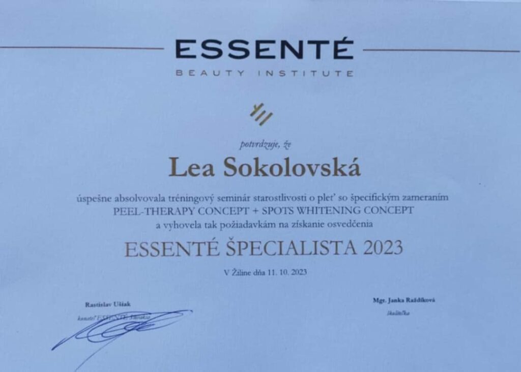 Neinvazívne liftingové ošetrenie ESSENTÉ s aktívnymi peptidmi a kaviarom, ktorého omladzujúci efekt vydrží 2 týždne. Tieto služby sú navrhnuté tak, aby podporili prirodzenú krásu každej klientky, zlepšili zdravie pokožky a dodali pleti mladistvý vzhľad.
