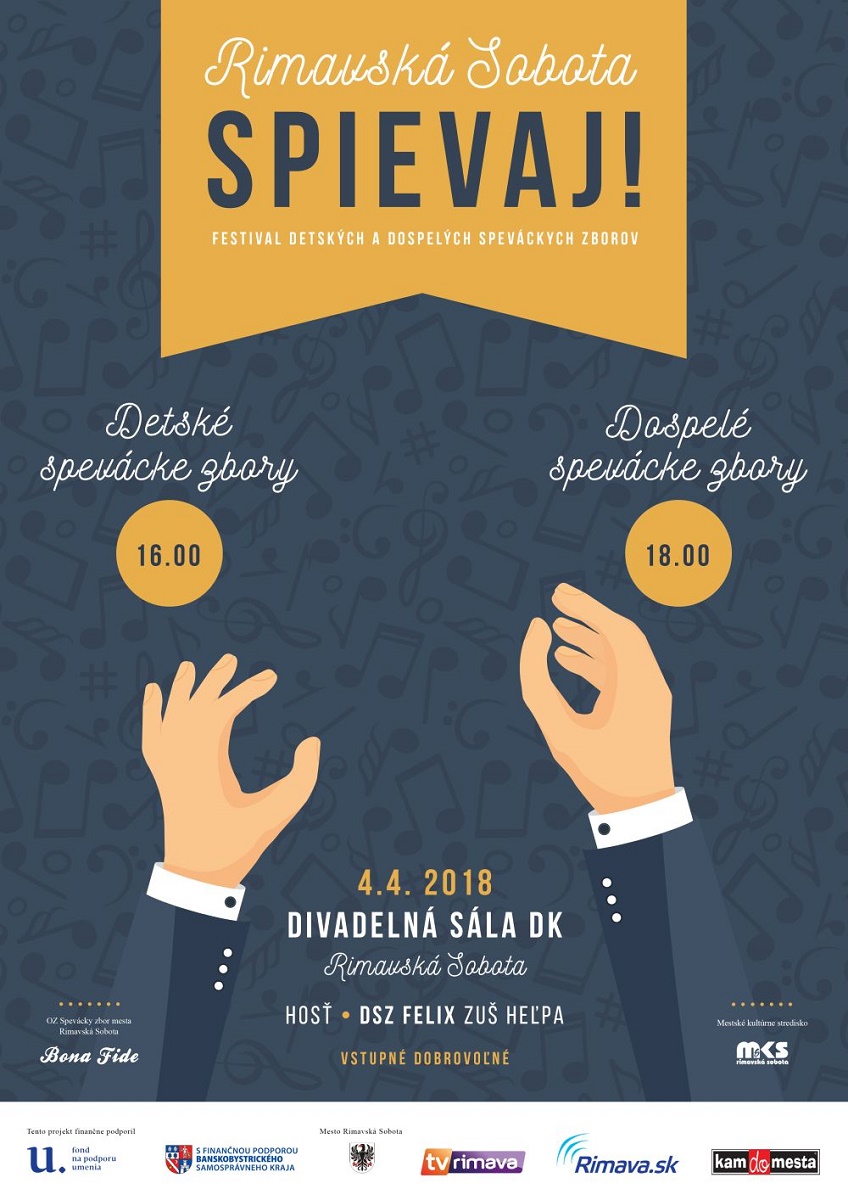 Hudobné predstavenia v mesiaci odštartuje festival zborov a speváckych skupín s názvom Rimavská Sobota spievaj! V stredu, 4. apríla, sa v Dome kultúry okrem detských a dospelých speváckych zborov z mesta predvedie aj hosť zo ZUŠ Heľpa - DSZ Felix s dirigentkou Andreou Kirschovou. Súčasťou podujatia bude aj popoludňajší workshop pre detské spevácke zbory a ich dirigentov. V sobotu 7. apríla vystúpi v Kultúrnom dome v Hnúšti s ľudovou hudbou Borievka spevák a veselý človek Ján Ambróz, ktorý v snahe zachovať čo najviac ľudových piesní z Horehronia pochodil Telgárt, Šumiac, či Pohorelú. Na svojej ceste za ľudovým bohatstvom objavil a prespieval mnoho už zabudnutých piesní.