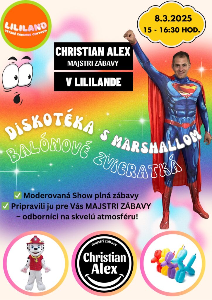 Detské zábavné centrum Lililand pripravuje pre všetkých malých aj veľkých návštevníkov nezabudnuteľné popoludnie plné smiechu, tanca a kúziel. Už 8. marca od 15.00 do 16.30 sa môžu deti tešiť na špeciálnu zábavnú show s Christianom Alexom a obľúbeným Marshallom z Labkovej patroly.