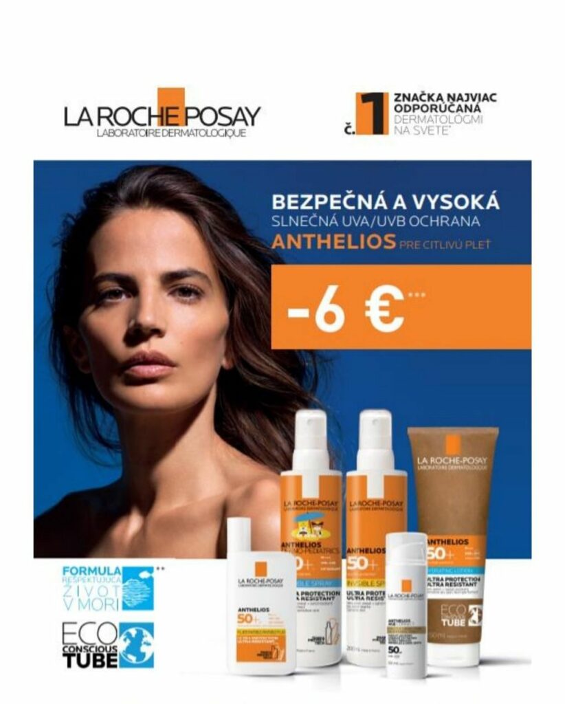 Radu ochrany pred slnkom má aj francúzska značka La Roche-Posay, ktorú nájdete v Lekárni na Námestí, kde aktuálne prebieha aj akcia, vďaka ktorej ušetríte 6 eur za nákup opaľovacích krémov tejto značky.