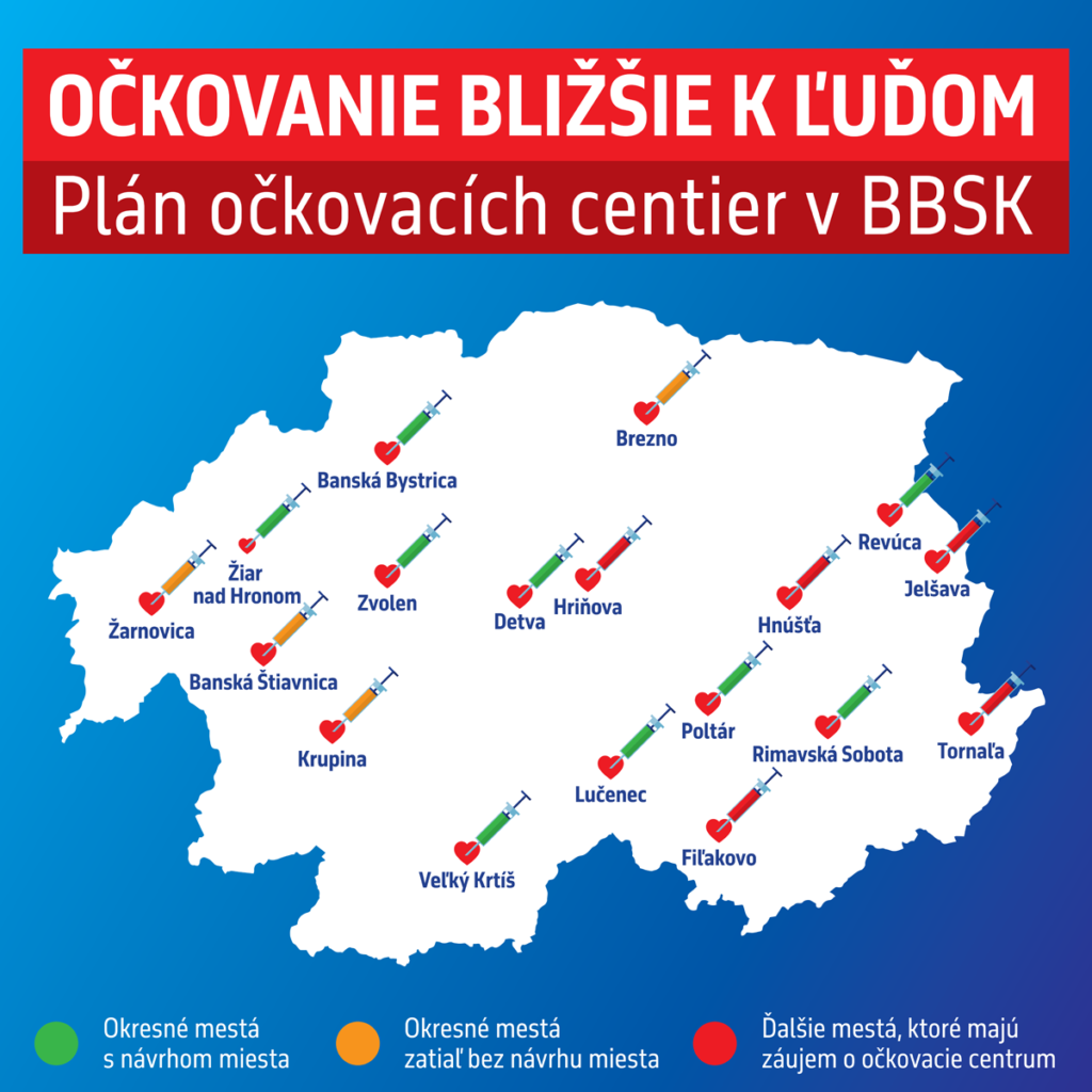 BBSK prichádza so zoznamom pre vznik veľkokapacitných očkovacích centier, pre ktoré boli v tejto chvíli vytypované nasledovné priestory. Ďalšie miesta v spádových oblastiach budú doplnené v priebehu najbližších dní.