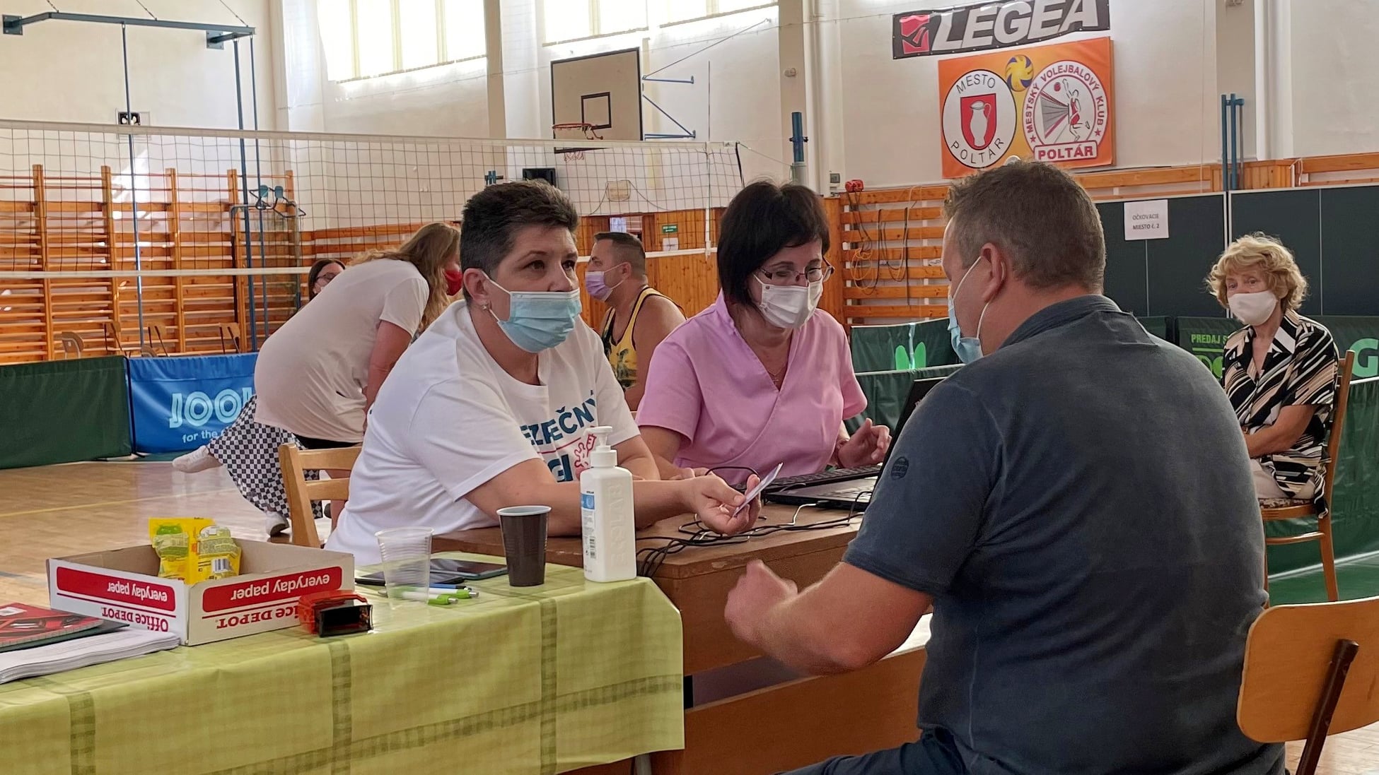 RIMAVSKÁ SOBOTA – Zdravotníci Nemocnice Svet zdravia Rimavská Sobota očkujú od augusta aj priamo v teréne. Počas prvej augustovej stredy vyrazili do Poltára a vakcínu proti ochoreniu COVID-19 podali celkovo 112 záujemcom nielen z tohto mesta, ale aj z okolitých obcí. Zapojil sa aj riaditeľ nemocnice Richard Hrubý spoločne s námestníkmi.