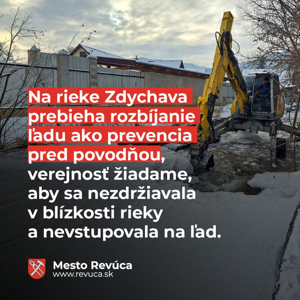 Mesto Revúca v týchto dňoch čelí potenciálnej hrozbe na rieke Zdychava. Kvôli pretrvávajúcim mrazom sa na vodnej hladine vytvorila hrubá ľadová vrstva, ktorá by mohla spôsobiť komplikácie pri prípadnom náhlom oteplení. Slovenský vodohospodársky podnik - Povodie Hornádu preto pristúpil k preventívnemu rozbíjaniu ľadu v úseku medzi Remeselníckou a Železničnou ulicou.