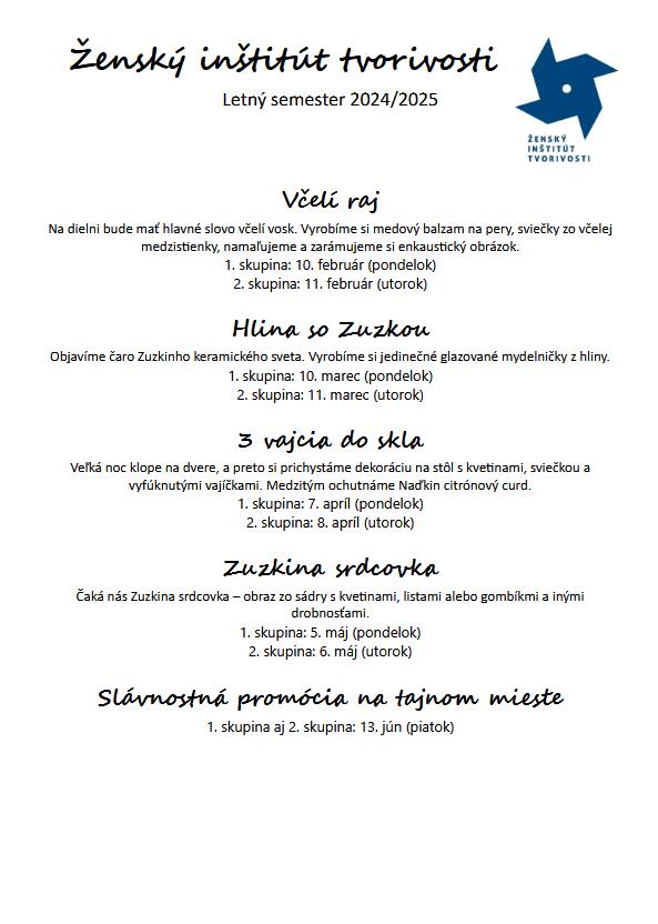 Viac informácií o dielni a registrácii nájdete na FB stránke Ženského inštitútu tvorivosti.
