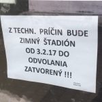 Zimný štadión v Rimavskej Sobote je v havarijnom stave a jeho správcovia ho museli z technických príčin zatvoriť. Dôvodom je zatekajúca strecha, kvapky vody pretekajú zo zasneženej strechy na ľadovú plochu, lavičky aj striedačky. „Doslova tam prší,“ povedal pre Rimava.sk riaditeľ TSM Tibor Barto, podľa ktorého ich takáto pohroma ešte nepostihla a pravdepodobne túto sezónu už štadión sprevádzkovaný nebude. Strecha bola podľa riaditeľa robená v 90-tych rokoch, teda už má približne 25 rokov. „Vyzerá to na kompletnú rekonštrukciu strechy, nielen na opravu,“ dodal. Zatekajúcu strechu ohlásili dnes ráno pracovníci zimného štadióna, strecha bola pravdepodobne už poškodená a silné mrazy a odmäk s bohatou snehovou nádielkou jej k zatekaniu dopomohli.