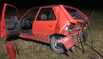 Pri nehode neďaleko R. Seči skončilo auto na streche, jedna osoba bola zranená