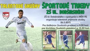22.máj.2015 - Mestský športový klub Rimavská Sobota a Základná škola Pavla Dobšinského organizujú talentové skúšky. Ďalej...