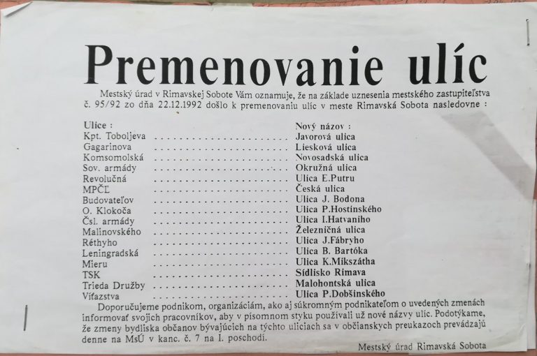 HISTÓRIA: Veľké premenovanie ulíc v R. Sobote v roku 1992