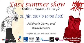 18.jún.2013 - Letné modely pre dámy aj pánov, trendové účesy, kadernícka a vizážistická šou, to všetko v závere tohto týždňa v Rimavskej Sobote. Hot Art 2013 pokračuje módnou prehliadkou Easy summer show, ktorá štartuje v piatok, 21. júna o 19.00 hod. na nádvorí reduty Čierny orol (v prípade nepriaznivého počasia v Dome kultúry). Ďalej...