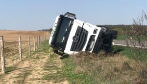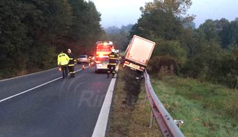 19.máj.2017 - Plne naložený kamión na kopci pred Lučencom v smere od Rimavskej Soboty zišiel do priekopy, kde sa prevrátil na strechu. Ďalej...